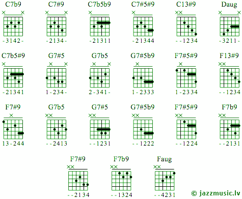 Šeit nav apkopoti visu džeza akordu ģitārai aplikatūras, bet tikai, manuprāt, populārākās un tipiskākās.