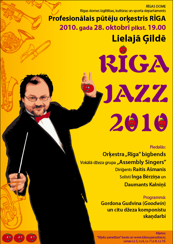 Turpinot džeza mūzikas atskaņošanas tradīcijas orķestrī „Rīga”, arī šoruden notiks džeza koncerts. Koncertā „Riga Jazz 2010” Raitis Ašmanis, Latvijas bigbendu lielmeistars, goda vietu ierādījis Gordona Gudvina (Gordon Goodwin) kompozīcijām. Amerikāņu komponists, aranžētājs, pianists, saksofonists G. Gudvins (1954) ir arī sava orķestra “The Big Phat Band” diriģents un trīskārtējs Emmy balvas ieguvējs, kā arī Grammy balvas ieguvējs kā labākais instrumentālā aranžējuma veidotājs filmai ”The Incredibles”. Koncertā skanēs G. Gudvina kompozīcijas ”Sing, Sang, Sung”, ”Hunting Wabbits”, ”Backrow Politics”, ”The Jazz Police”, ”Samba Del Gringo”, ”Get in Line”, ”Floating Home”, kā arī populārā kompozīcija ”Attack of the Killer Tomatoes” G. Gudvina aranžijā no 1978. gada režisora Dž. De Bello amerikāņu kulta filmas ar tādu pašu nosaukumu.