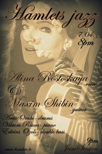 Alina Rostoskaya un viņas draugi – Hamletā Alina Rostoskaya – balss Maxim Shibin -ģitāra Artis Orubs – bungas Viktors Ritovs – klavieres Edvīns Ozols – kontrabass www.alinarostoskaya.com