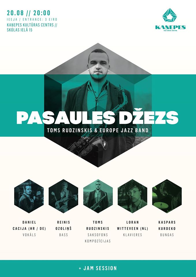 Pianists Loran Witteveen no Amsterdamas, kas pagājušajā gadā ieguva prestižā “Dutch Jazz Competition” grand prix balvu, kā arī mums visiem tik ļoti iemīļotie pašmāju džeza mūzikas filosofijas sekotāji – viens no Latvijas progresīvākajiem basistiem Reinis Ozoliņš un viens no izcilākajiem jaunās paaudzes latviešu bundziniekiem Kaspars Kurdeko un, protams, pats saksofonists Toms Rudzinskis, kas pēdējo gadu laikā guvus plašu atzinību koncertējot Eiropā.