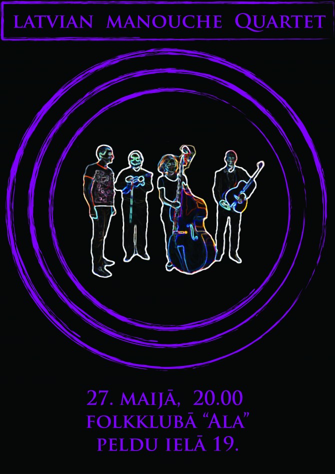 Ar pavasarīgiem sveicieniem, šajā piektdienas vakarā 21:00 pie mums viesosies brīnišķīgs kvartets- LATVIAN MANOUCHE QUARTET.