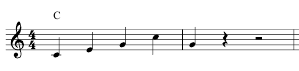 Izdomāt, nodziedāt un tad atkārtot nodziedāto uz sava instrumenta muzikālu frāzi, veidotu no C (do mažora) akorda skaņām.