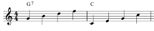 Paskaidrojumi. Šie divi akordi ir savienoti un veido harmonisko secību, piemēram, viena takts G7 – otra takts – C. Tas nozīmē, ka frāzei ir jāsavieno akordi. Lai to panāktu savienojiet iepriekšējā akorda pēdējo noti ar nākošā akorda tuvāko noti. Piemēram, pirms akordu maiņas pēdējā nots ir fa, tad nākošā nots frāzē varētu būt mi.