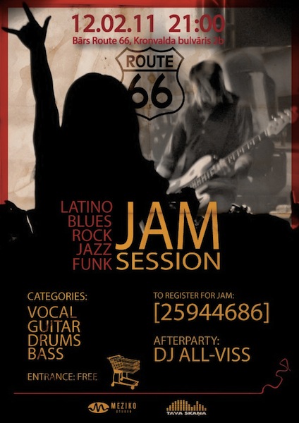 12. Februārī sestdien 21:00 vakarā Bārs Route 66, Kronvalda bulvāris 2b, Rīga, norisināsies Jam session.