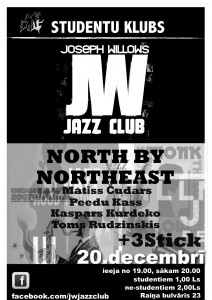 Otrdien, 20. decembrī plkst. 20:00, LMA Studentu klubā notiks džeza vakars “Joseph Willow’s Jazz Club” pēdējais šī gada koncerts kopā ar īpašajiem viesiem “North by Northeast”.