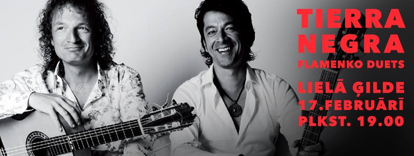 Duets Tierra Negra uzstāsies ar flameko mūzikas koncertu Lielajā ģildē 17.februārī plkst. 19.00Jaunā flamenko mūzikas pasaulē tikai daži mūziķi ir sasnieguši Tierra Negra virsotnes. Tierra Negra bieži tiek saukti par Flamenco Nuevo galvenajiem tēliem. Viņi piepilda savus darbus ar folkloras, džeza un popmūzikas elementiem, tomēr tēmas pamatā vienmēr paliek aizraujošs ritms un rumbas-flamenko melodija. Kopā viņi izstrādājuši savu melodijas un ritma ģitāras tehniku un miksē to ar spāņu flamenko tradīcijām. Katrs Tierra Negra koncerts ir virtuoza muzikāla uguņošana ar valdzinošu mijiedarbību, hipnotizējošām melodijām un spēcīgu flamenko.Tierra Negra strādājusi ar daudziem jo daudziem starptautiski atzītiem mūziķiem, kā: Muriel Anderson, Victor Wooten, Mark Egan, Stu Hamm, Stanley Jordan, James Burton, Reeves Gabrels, Bob Brozman, Phil X, Danny Gottlieb, Paul Wertico, Jack Pearson, Beth Nielson Chapman, Ram Borcar, Peppino D`Agostino, Bernie Dressel, Klaus Hoffman, Luna Lee un citiem.2000.gadā Tierra Negra radīja “Tierra Negra ģitāru” un atrādīja to publiski 2001.gada “Frankfurter Musikmesse” izstādē. The Gipsy Kings iegādājās no Tierra Negra 10 ģitāras un kopš tā laika izmanto tās, izpildot skaņdarbus koncertos un studiju ierakstu laikā.