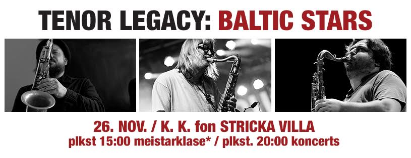 RIGA ROOM aicina 26. novembrī K.K. fon Stricka villa atzīmēt saksofona 170 gadskārtu Deniss Pashkevich’s saxophone festival “JAZZ ROOM” pirmās sesijas koncertā Tenor Legacy: Baltic Stars kopā ar trīs vadošajiem Baltijas saksofonistiem Denisu Paškeviču /Latvija/, VILLU VESKI /Igaunija/ un Liudas Mockunas /Lietuva/. Koncerta īpašais viesis viens no oriģinālākajiem džeza improvizētājiem – ģitārists Marc Ducret no Francijas.