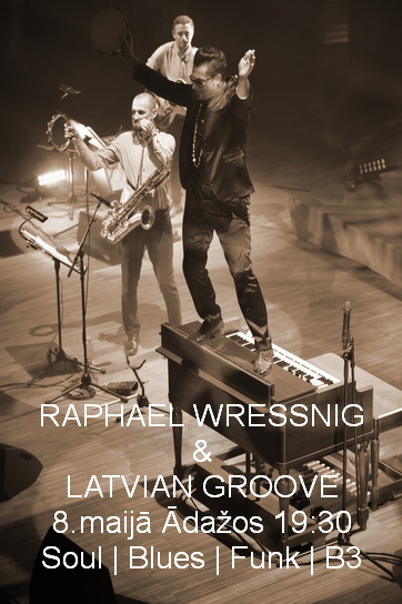 “Raphael Wressnig & Latvian Groove” ir uzstājušies visā Baltijā, tai skaitā izpārdotā koncertā Liepājas koncertzālē “Lielais dzintars”, bet šī gada koncerts mūsu mūziķu aizņemtības dēļ būs vienīgais Baltijā – “Raphael Wressnig & Latvian Groove” 8. maijā plkst. 19:30 koncertēs Ādažu Kultūras centrā.